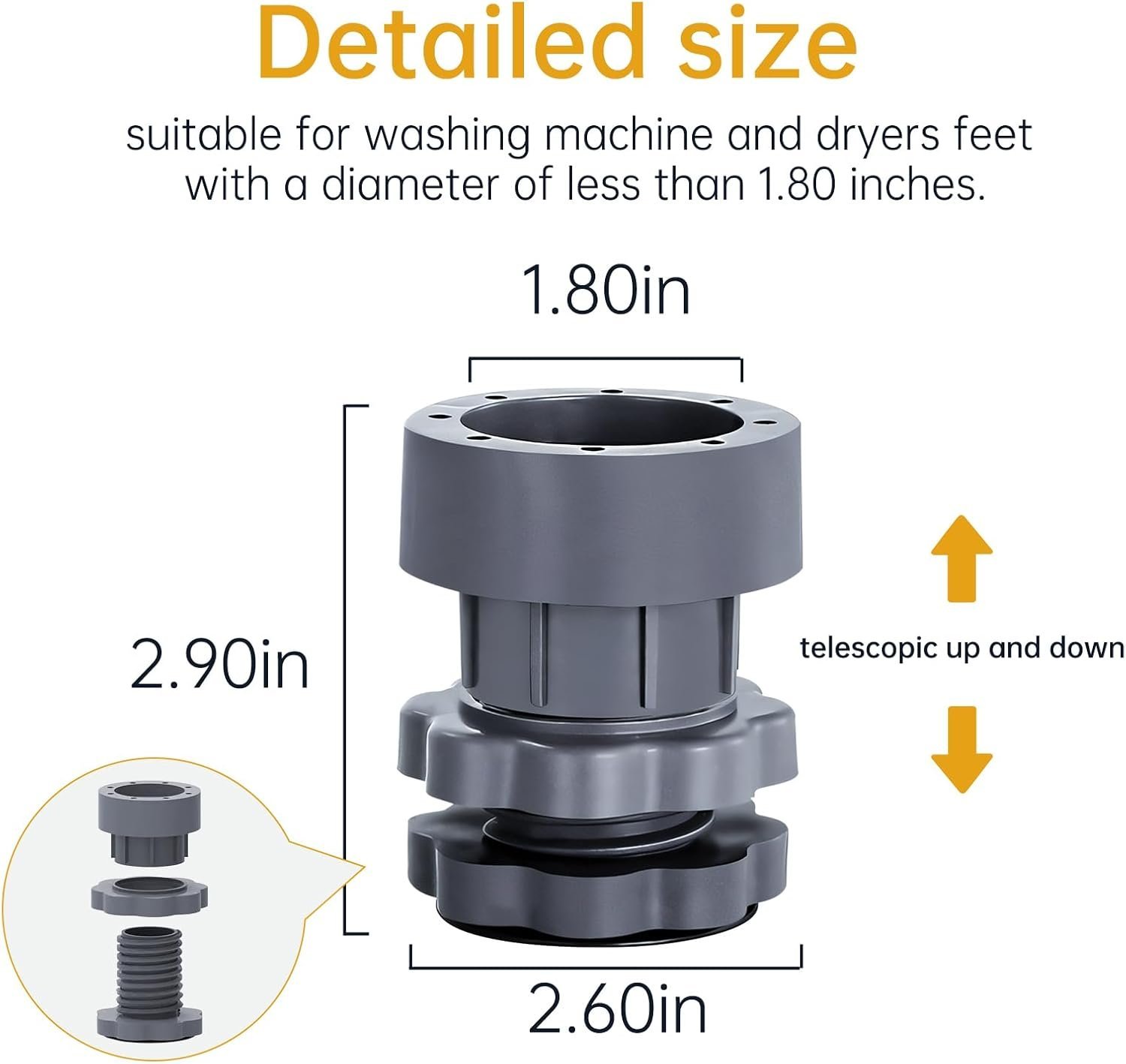 • suitable for washing machine and dryers feet with a diameter of less than 1.80 inches.