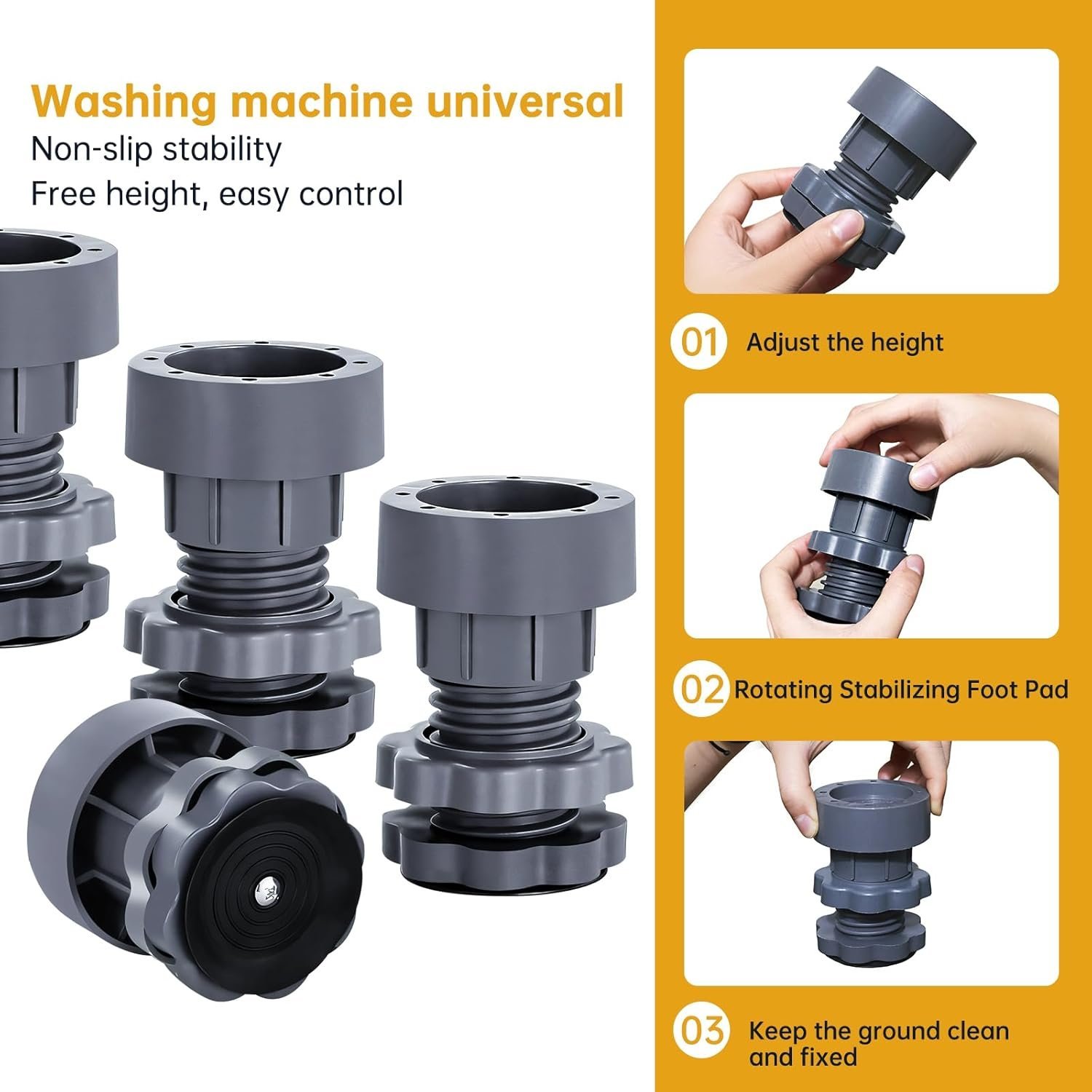 Almohadilla Antivibración para Lavadora 4 Almohadillas para Orejas para Lavadora Antivibración Almohadilla Antivibración Ajustable para Lavadora y Secadora con Cancelación Golpes y Ruido